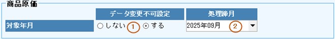 2.データ変更不可設定を行う場合、処理締日を入力します。 入力日付以前の商品原価データに対し、追加、変更が出来なくなります。 例)商品原価更新