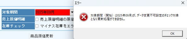 商品原価データの締日を設定し、指定日付以前の商品原価データを追加、変更出来ないように設定します。