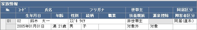 該当の扶養親族の情報が上記の場合、<表1><表2>はそれぞれ以下の通りです。