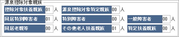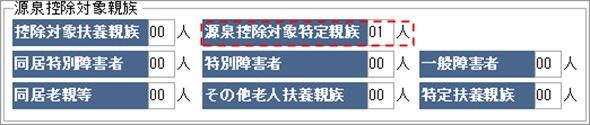 扶養親族等の年齢、所得に応じて〔給与マスタ登録〕の源泉控除対象親族の人数を設定します。