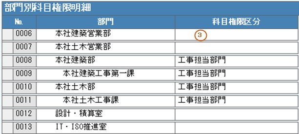 部門に対し、入力された科目権限区分が適用されます。未入力の場合、「制限なし」の扱いとなります。