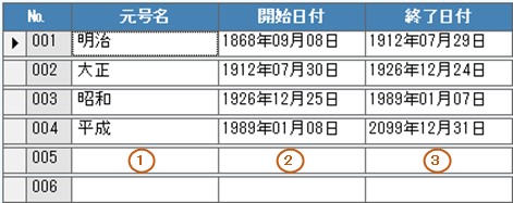 1行上の「終了日付」を実際に元号が終了した日付に変更する必要があります。