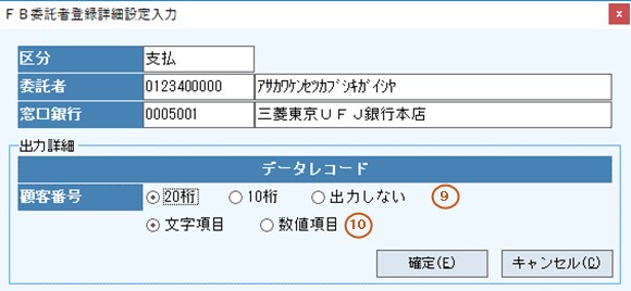 〔支払FBANK〕で利用する委託者情報と出力方法を登録します。