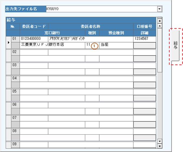 〔支払FBANK〕の場合、通常は「11又は71:給与」を入力します。不明な場合は、銀行にご確認ください。