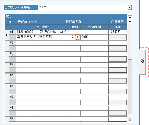 〔支払FBANK〕の場合、通常は「12又は72:賞与」を入力します。不明な場合は、銀行にご確認ください。