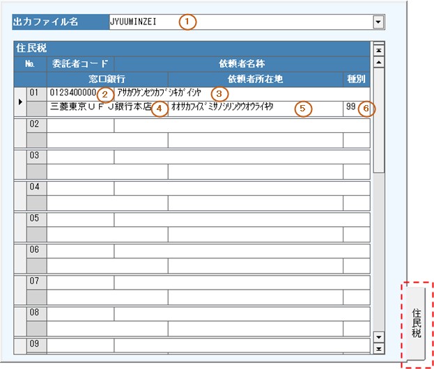 〔住民税FBANKデータ出力〕で利用する委託者情報を登録します。