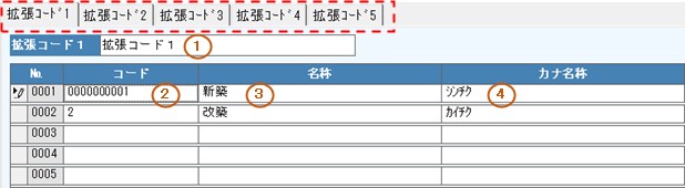 「拡張コード1」~「拡張コード5」の「項目名」と連動しています。