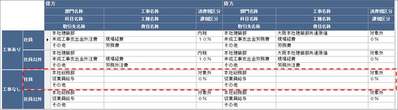 〔出面情報システム〕で工事を入力しておらず社員だけで入力した出面情報から作成する仕訳の設定を