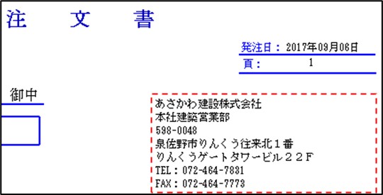 「フォント」・・・4.の項目で入力した会社情報を、注文書に出力します。