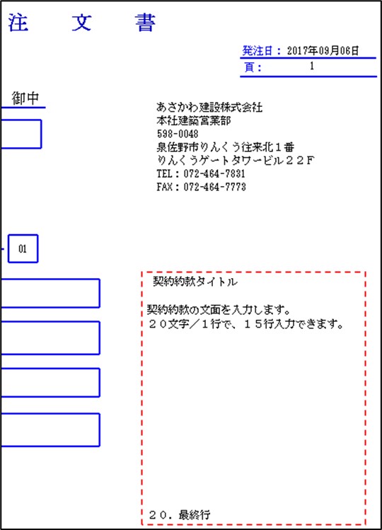 ここで入力した内容が、注文書の契約約款として出力されます。