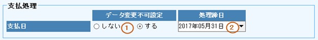 支払データの締日を設定し、指定日付以前の支払データを変更出来ないように設定します。