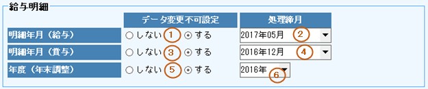1.給与データに対し、データ変更不可設定を行わないか、行うかを選択します。