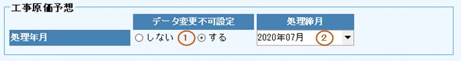 2.データ変更不可設定を行う場合、処理締日を入力します。 入力日付以前の原価予想データに対し、変更が出来なくなります。 例)工事原価予想入力