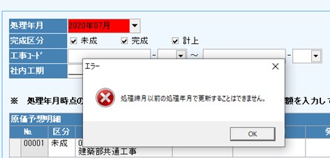 原価予想データの締日を設定し、指定日付以前の原価予想データを変更出来ないように設定します。