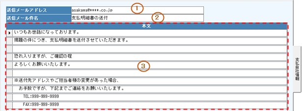 〔支払明細書メール送信〕で使用する、自社情報を設定します。