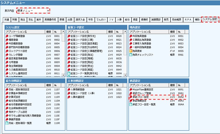 承認設定グループボックスの〔承認フロー設定〕を起動します。