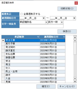 4.クリックすると承認種別検索が起動し、選択した承認フロー設定が参照元として