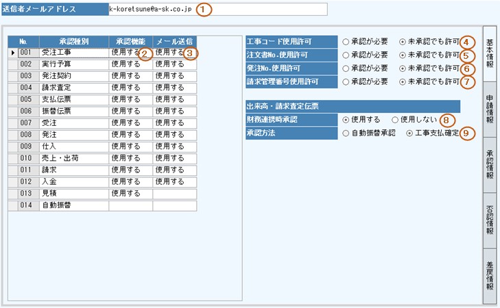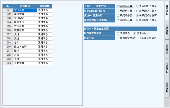 8.出来高・請求査定伝票の財務連携時に承認処理をするかしないかを選択します。