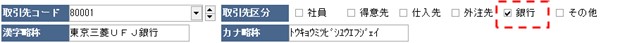 取引先区分の「銀行」をチェックします。