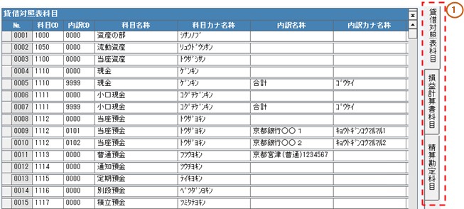 1.貸借対照表科目には、貸借対照表に出力する科目を登録します。