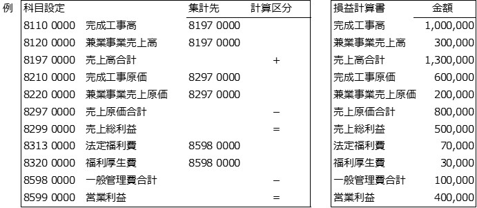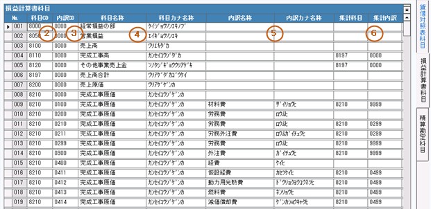 損益計算書科目には、損益計算書に出力する科目を登録します。