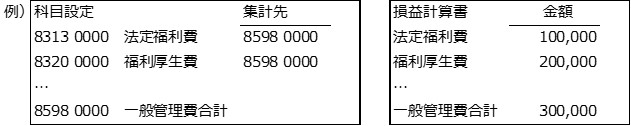 科目の金額を、別の科目に合計する場合、合計先の科目コードと内訳コードを入力します。