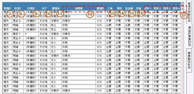 12.科目の消費税区分、課税区分の初期値を設定します。必須項目です。