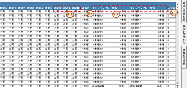 20.〔キャッシュフローオプション〕を導入している場合、キャッシュフロー科目と計算方法を設定します。