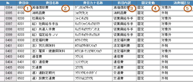 各伝票入力にて、費目コードより未成工事支出金科目を自動展開するために利用します。