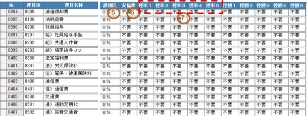 5.費目の消費税区分、課税区分の初期値を設定します。必須項目です。