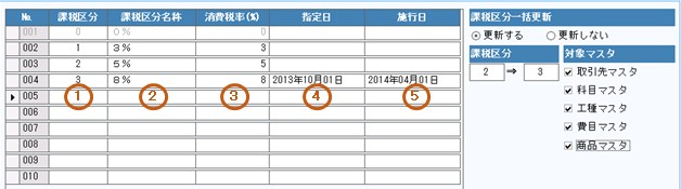 します。〔財務情報登録〕の消費税区分自動設定「する」の場合、施工日より各画面の日付時点の課税区