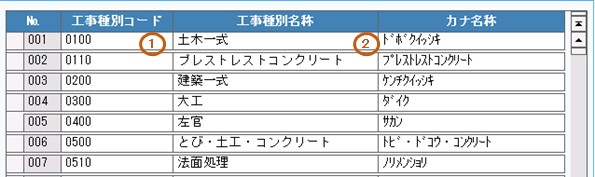 1.工種種別コードを入力します。必須項目です。