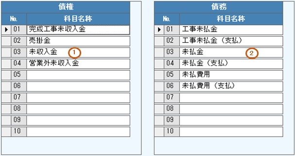 〔債権債務管理表〕で「債権金額」「債務金額」を集計する際に利用します。