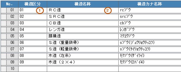 建物の構造区分を登録します。〔受注工事登録〕で利用します。