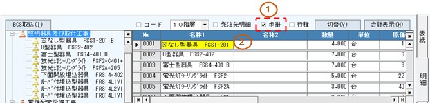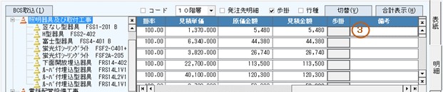 3.明細を右にスクロール、「歩掛」ボタンをクリックし、歩掛内訳入力画面を起動します。