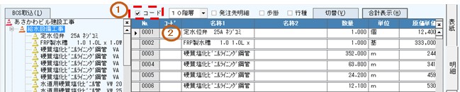 付与したコードは、見積情報を実行予算情報として展開する場合や、原価実績との比較の際に利用します。