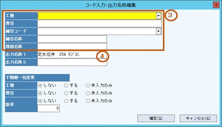 コード入力・出力名称編集画面が起動します。