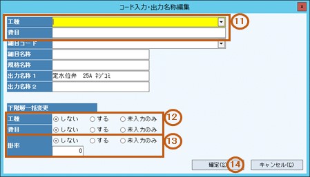 11.必要に応じて、工種・費目を入力します。