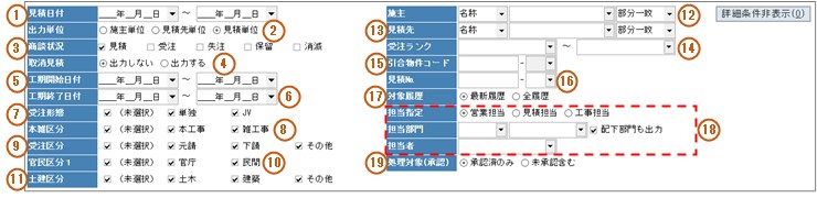 19.「承認済」の見積情報を出力するか、「否認」以外の見積情報を出力するかを選択します。