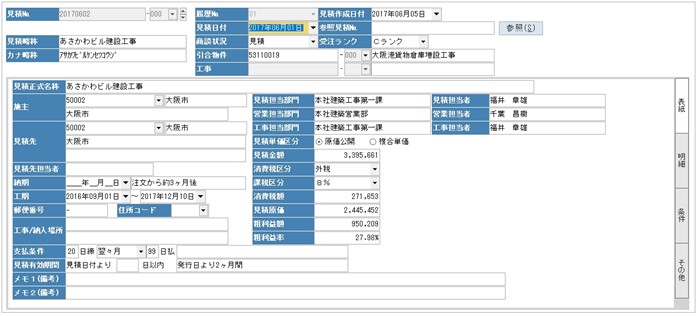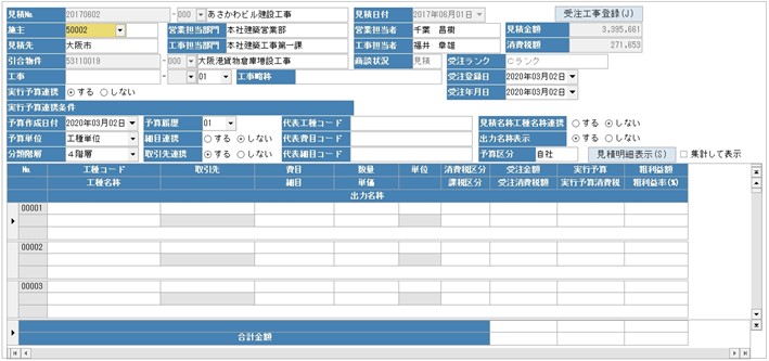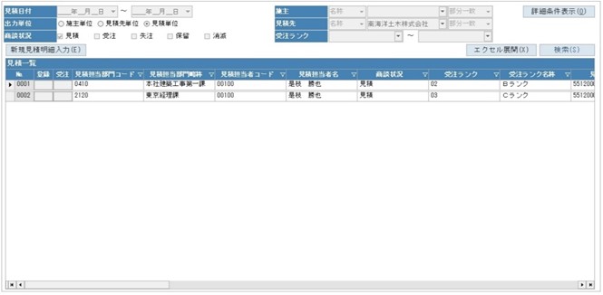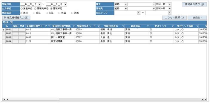 を追加で起動し、対象の施主(見積先)に紐づく見積情報を「見積単位」で表示します。