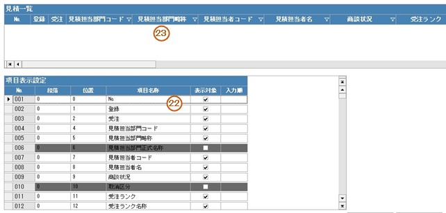 このとき、起動した受注確定(見積)画面の見積№は、クリックした行の見積№から変更は出