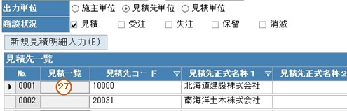 27.出力単位が「施主単位」「見積先単位」の場合、見積一覧ボタンをクリックすると、見積照会画面