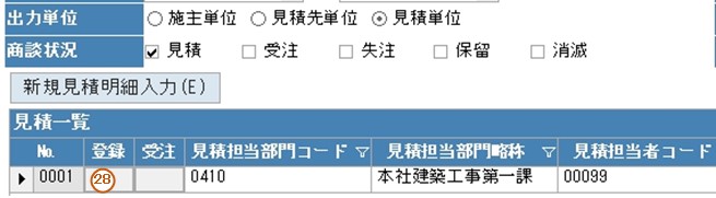 28.出力単位が「見積単位」の場合、登録ボタンをクリックすると、クリックした行の見積情報を