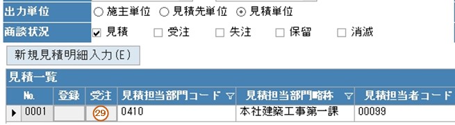 29.出力単位が「見積単位」の場合、受注ボタンをクリックすると、クリックした行の見積情報を