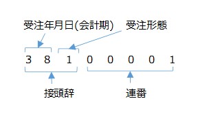 タイプ「半角数字」 桁数「8桁」 自動採番「する」 接頭辞「受注年月日(会計期)」+「受注形態」