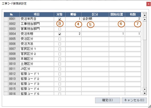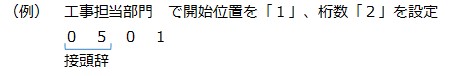 〔システム設定〕〔原価情報登録〕の工事コード接頭辞設定で設定している接頭辞(対象にチェックを付け