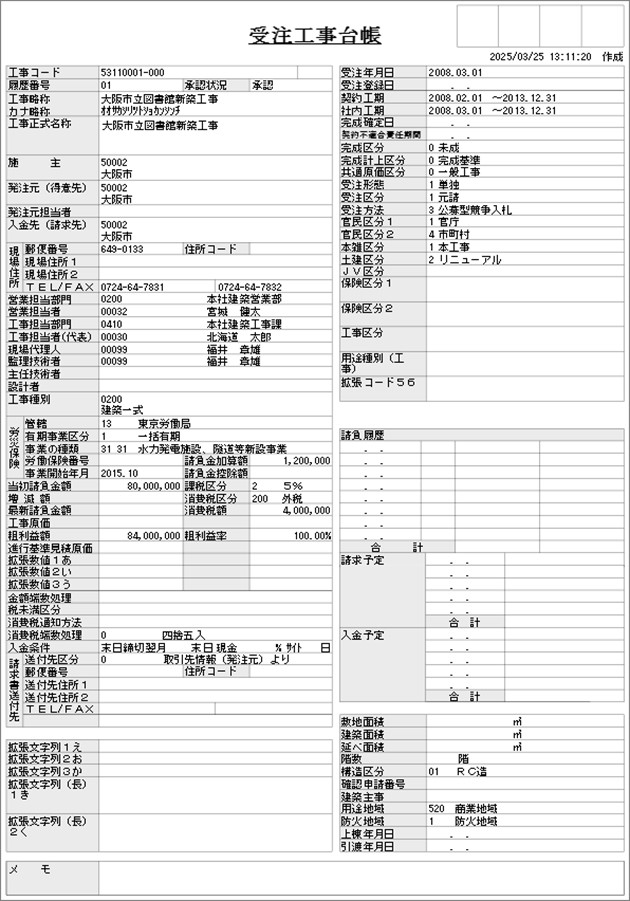 受注工事台帳(詳細):