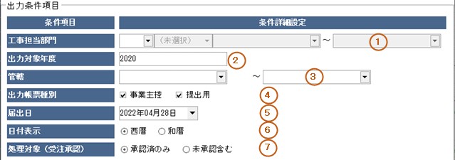 「承認済のみ」の場合、承認済みの工事のみ出力します。