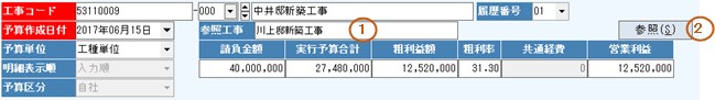 参照したい実行予算情報が登録されている工事コードを入力します。