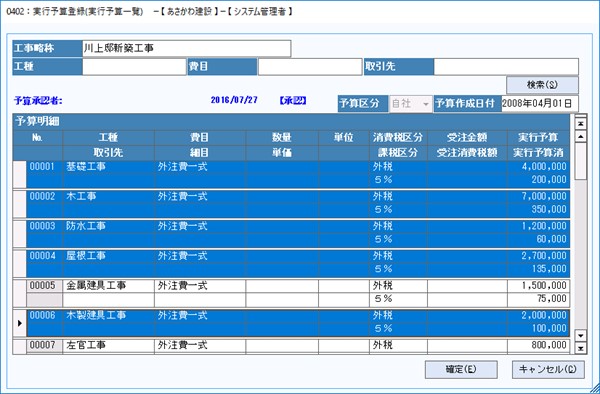 引用したい明細行をダブルクリックするか、明細行をクリックし、選択した状態で確定ボタンをクリックすると、予算明細に自動展開します。
